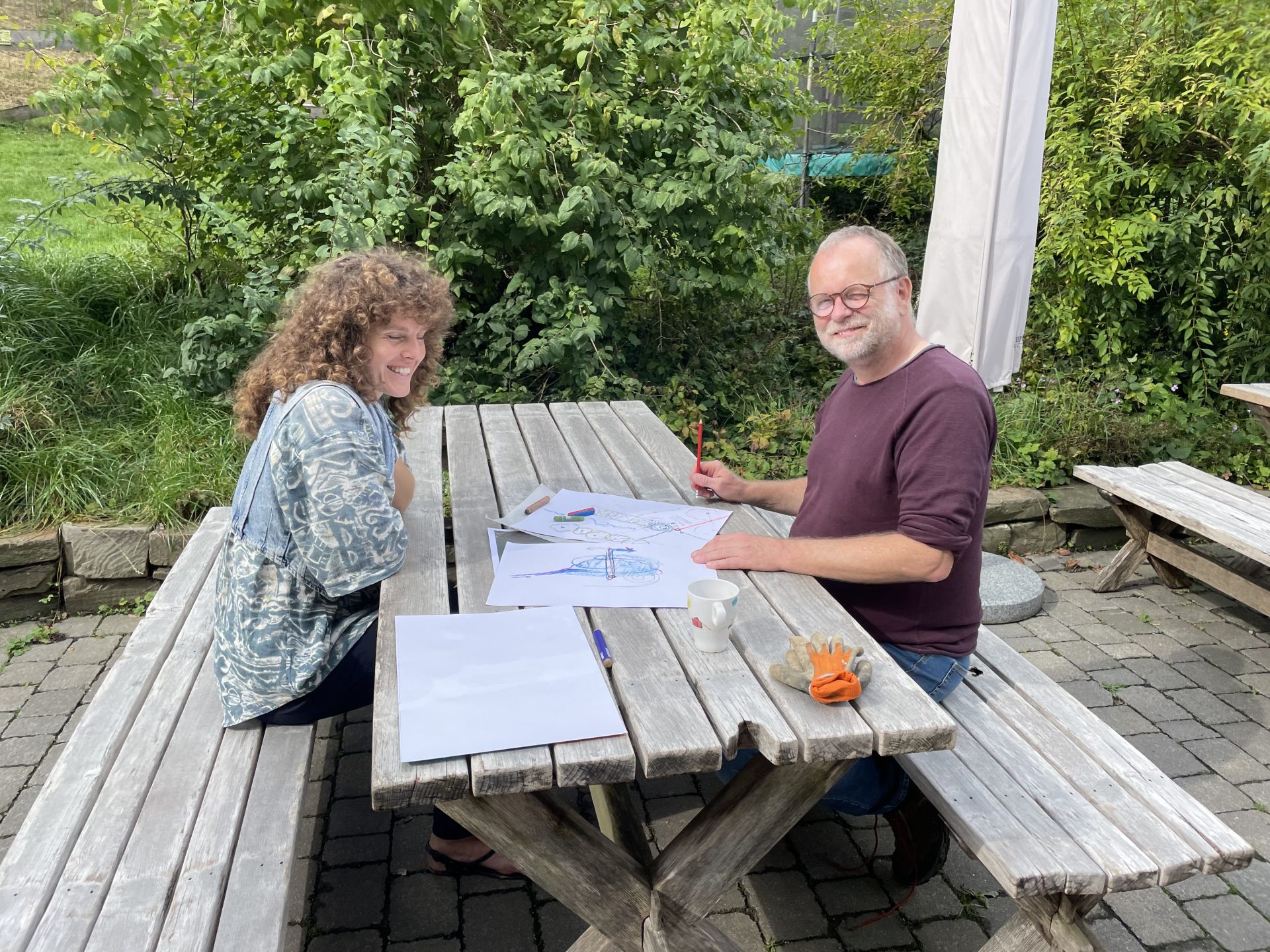 Mit Studierenden aus Psychologie, Medizin und Buisness haben wir auf dem Hof Günnemann Kotten in der Nähe der Uni die Wahrnehmung geschult, Potentiale für die Gartengestaltung gezeichnet und Biotope angelegt.