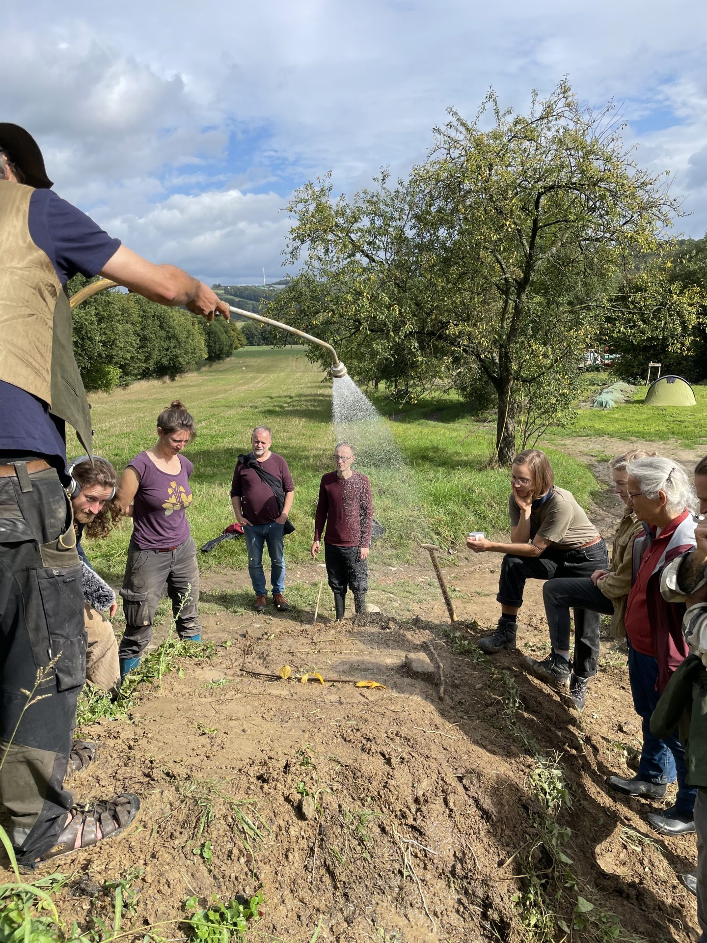 Mit den Landwirt*innen und Gärtner*innen der Hofgemeinschaft, Studierenden der Landbauschule und externen Teilnehmenden wurden 10 Wasserretentionsmaßnahmen festgelegt. Schon jetzt ist ein sogenannter Bieberdamm umgesetzt und wir begleiten den Hof mit seinen weiteren Wasserretentionsprojekten.